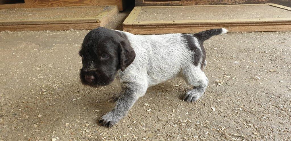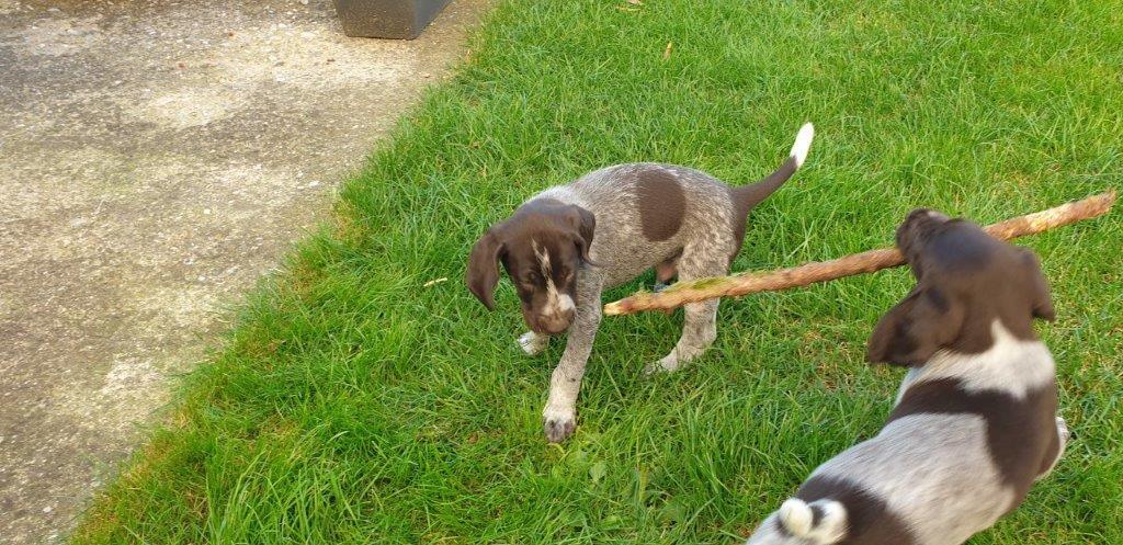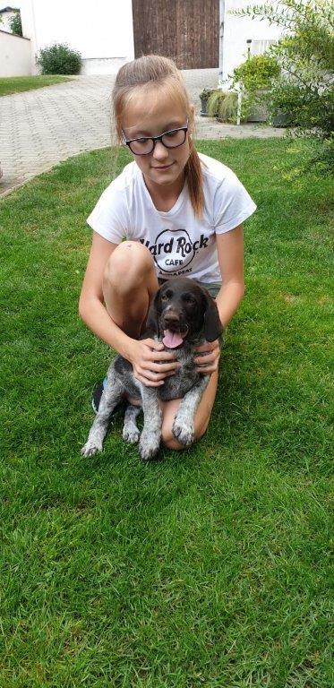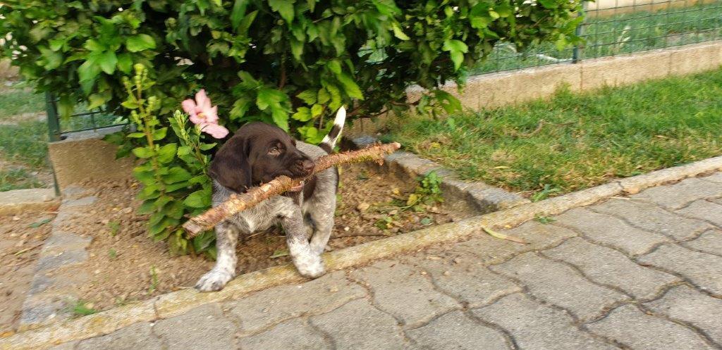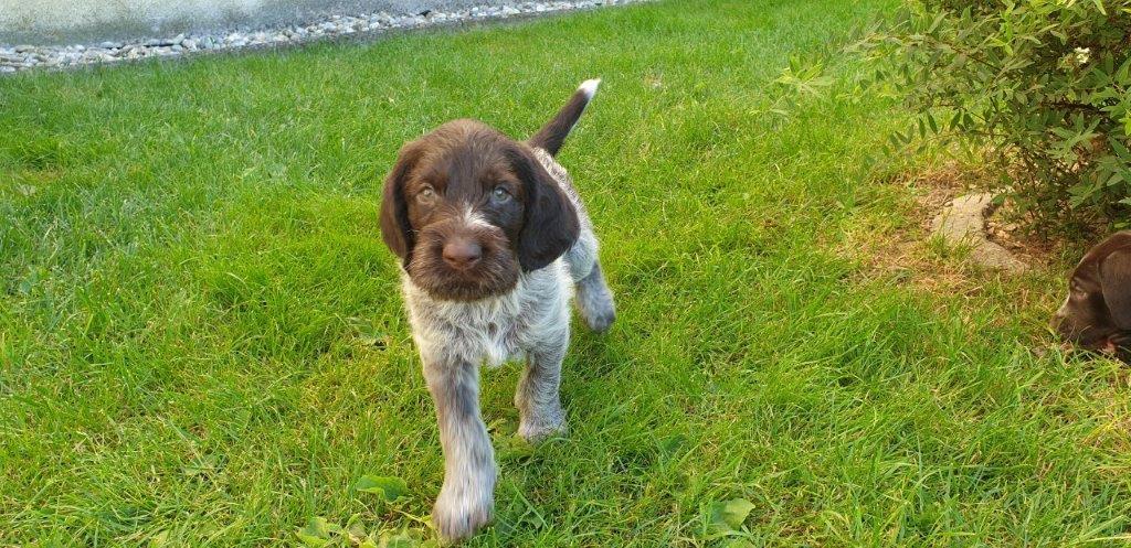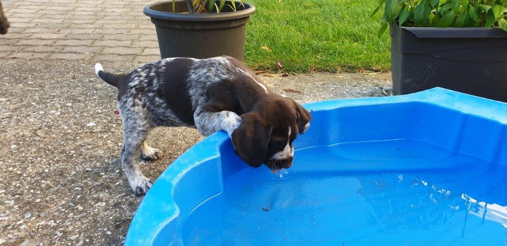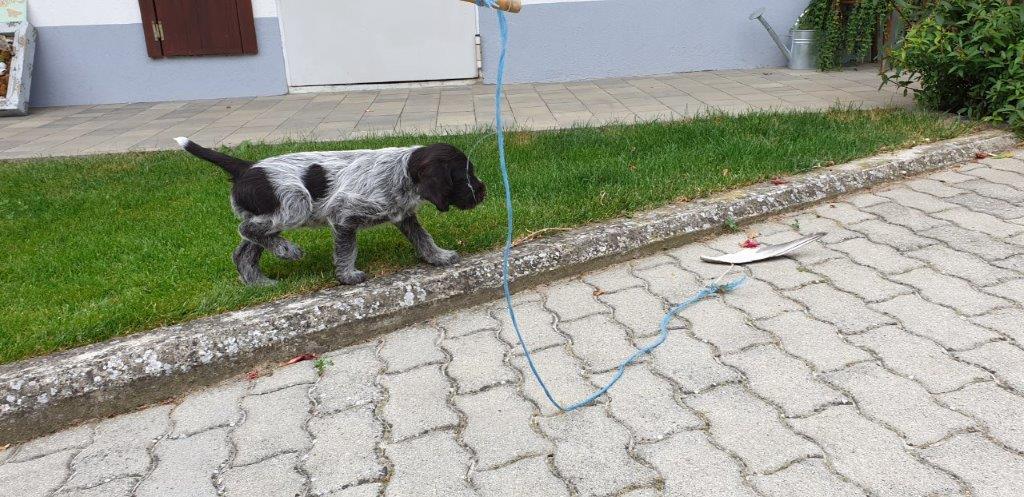 Mira vom Weichselgrund mit 7 Wochen beim Vorstehtraining