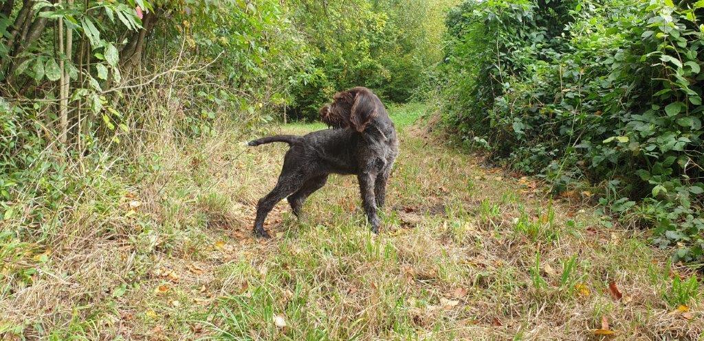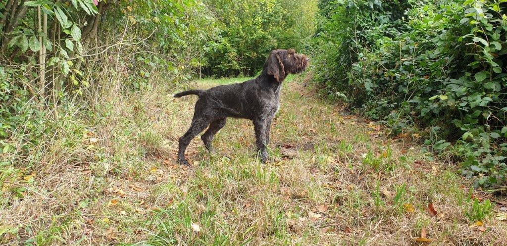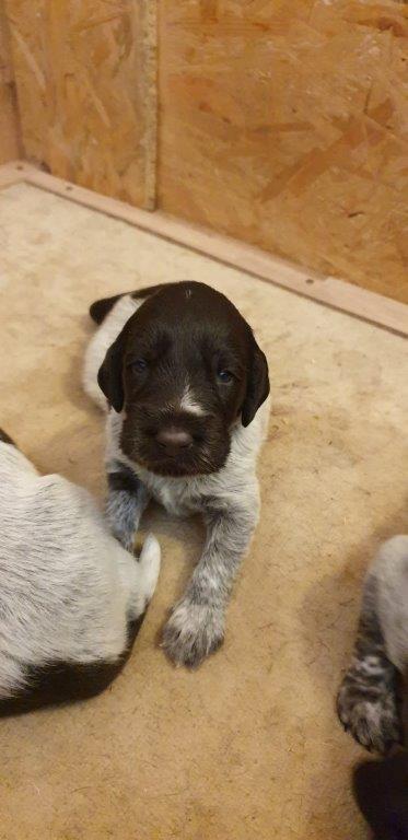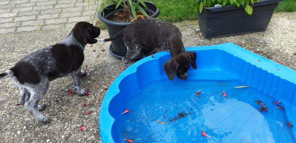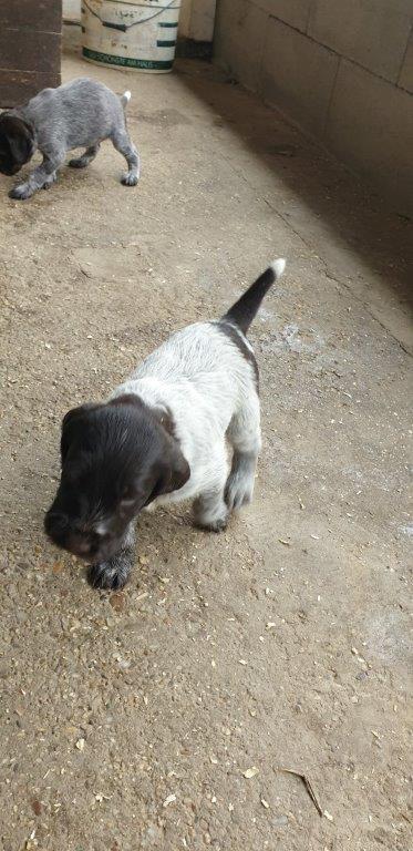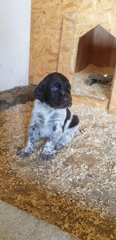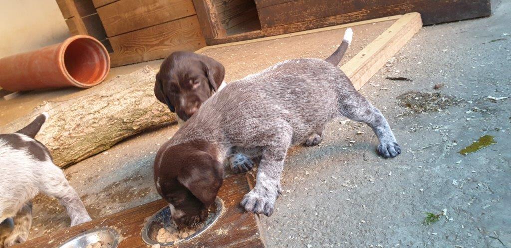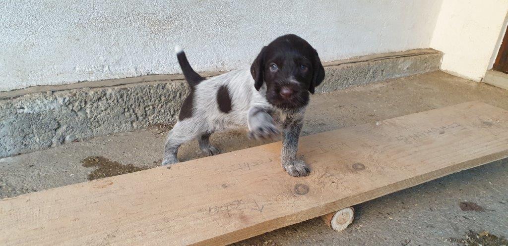Mira vom Weichselgrund mit 7 Wochen beim Vorstehtraining