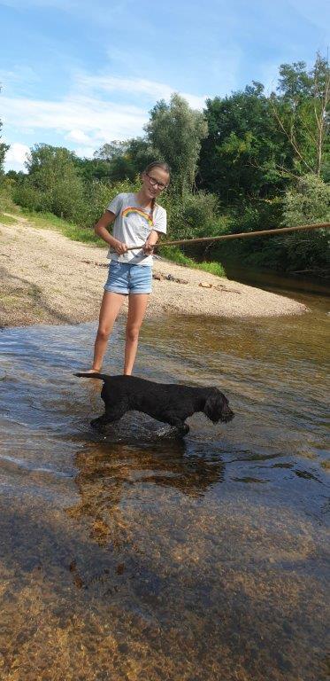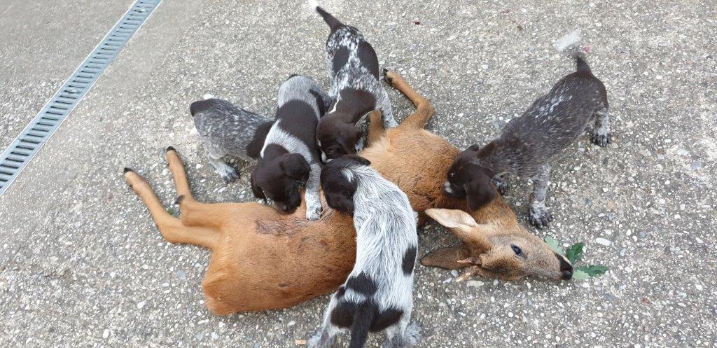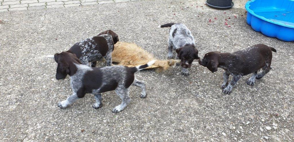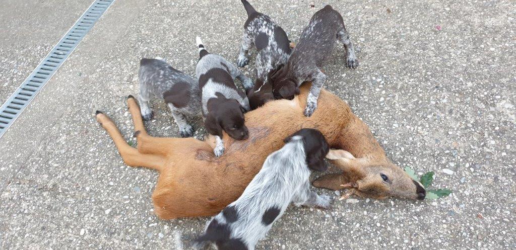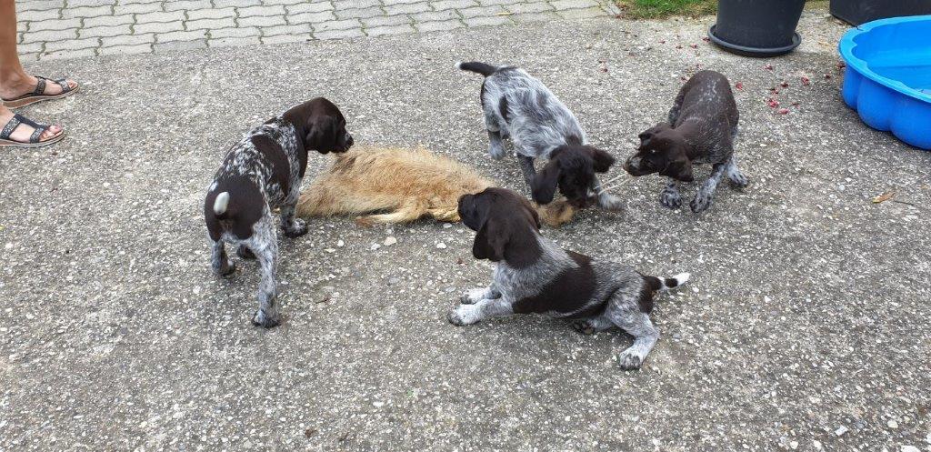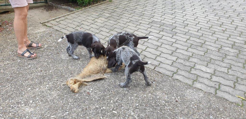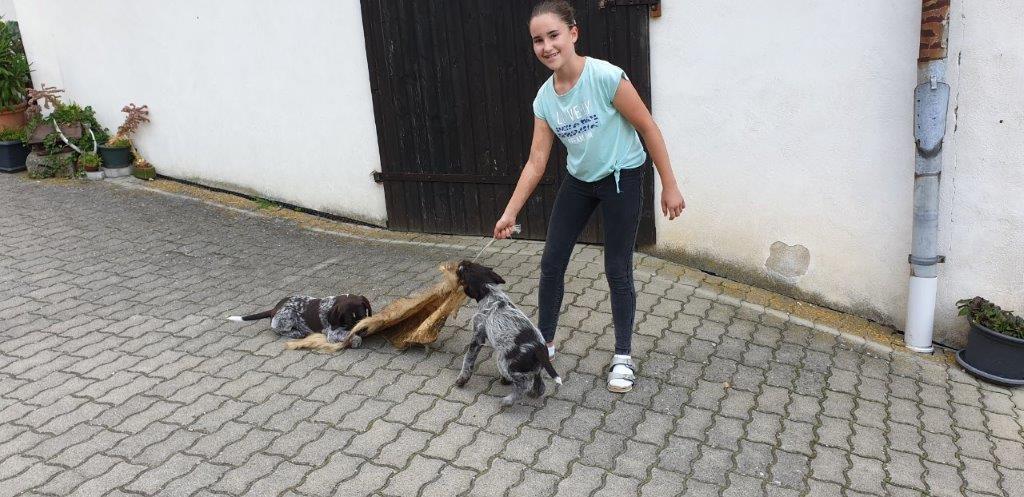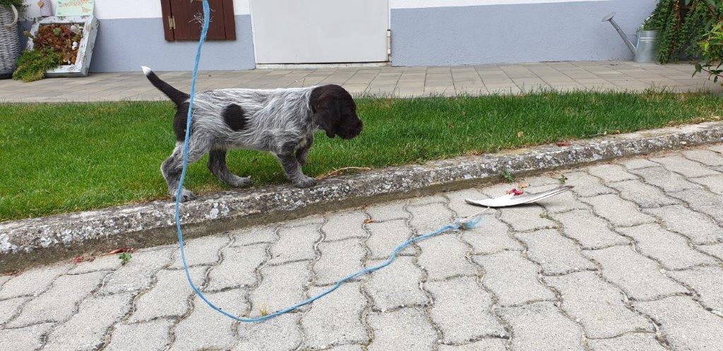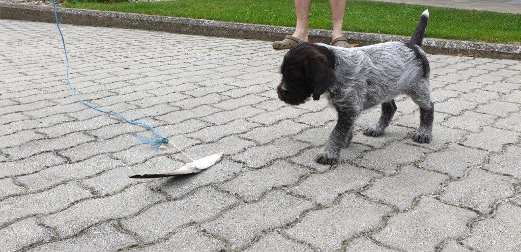 Mira vom Weichselgrund mit 7 Wochen beim Totverbell-Training